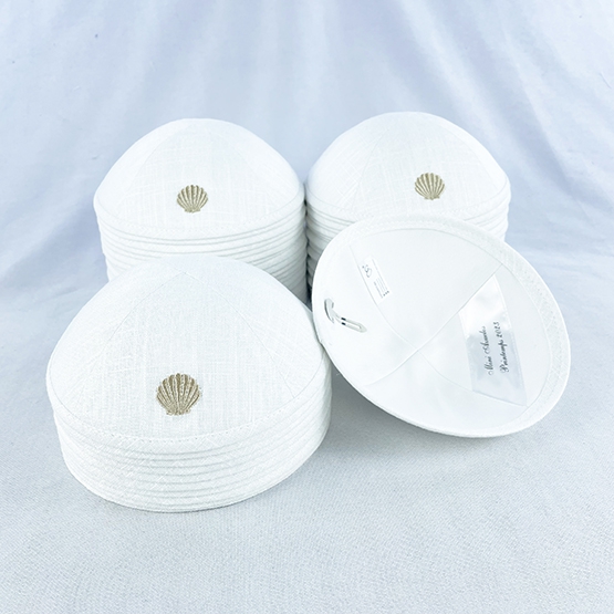 white linen kippas with beige embroidery